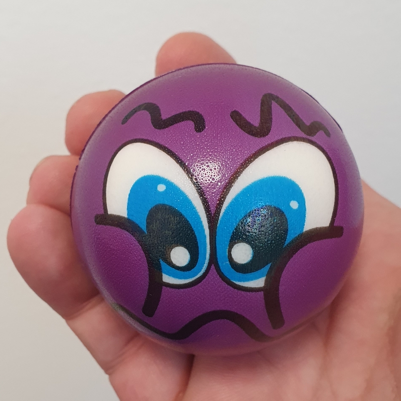 Loptička s motívom smajlíka. Je mäkká a dobre skáče.