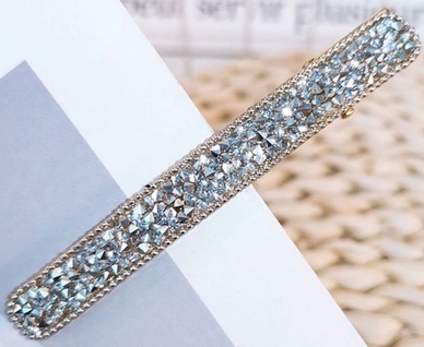 Pekná spona do vlasov v tvare obdĺžnika s trblietavými kamienkami.