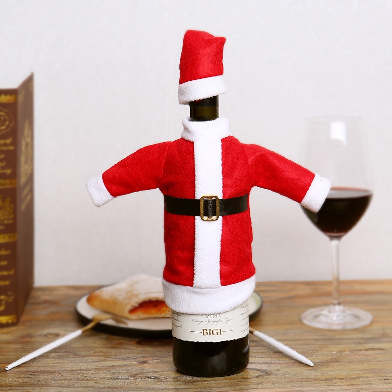 Santov kabát spolu s čapicou na fľašu (vína). Zaujímavá vianočná dekorácia.