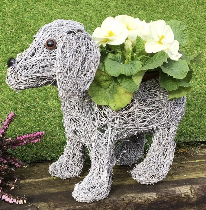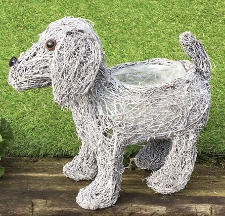 Originálna dizajnová vychytávka na pestovanie kvietkov. Kvetináč vymodelovaný v tvare stojaceho psíka, na chrbte je miesto na pestovanie kvetov.
